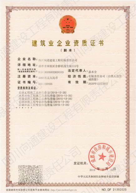 四川向通建設(shè)工程有限責(zé)任公司 四川向通建設(shè)工程有限責(zé)任公司成立于2007年,注冊資本金5060萬元,是一家專業(yè)從事瀝青混合料生產(chǎn)、專業(yè)分包以及市政道路、公路、路基工程專業(yè)施工建設(shè)的企業(yè)。公司注冊地址及生產(chǎn)廠區(qū)位于成都市雙流區(qū)金橋鎮(zhèn)茂生街115號,總占地面積約120畝;辦公地址位于雙流區(qū)海濱城海濱廣場7座11樓。公司生產(chǎn)廠區(qū)(雙流金橋)現(xiàn)有LB-5000型瀝青混合料拌合樓1套,每小時瀝青混合料生產(chǎn)量可達380噸。此外,根據(jù)項目需要,公司在多地建立4000型拌合站以服務(wù)施工(廣安齊福、達州、綿陽等),每小時瀝青混合料生產(chǎn)量為320噸。各種國內(nèi)外道路施工機械:攤鋪機、壓路機、銑刨機、灑布車、封層車、吊車、拖車、等70余臺,可滿足各種道路施工需求。公司近100輛保溫運輸車輛均安設(shè)保溫板、加塞保溫棉、覆蓋棉絮和隔熱防水雨篷,有效減少瀝青混合料在運輸過程中的溫度流失進而保證瀝青路面的施工質(zhì)量。 公司目前擁有眾多優(yōu)秀的技術(shù)人才,成熟的市場渠道,良好的企業(yè)聲譽。現(xiàn)有各專業(yè)施工人才共計79人;5支專業(yè)的施工班組可根據(jù)現(xiàn)場的具體情況制定實施性施工方案。今后公司將竭誠為各界客戶提供出色的產(chǎn)品和服務(wù)及具有競爭性的價格和具有創(chuàng)新精神的高效解決方案。 公司曾經(jīng)榮獲:新津鄧雙段被新津縣政府評為“優(yōu)良工程”;雙流宗申大道被雙流縣政府評為“優(yōu)良工程”;成都后花園被成都市政府評為“重合同守信譽單位”;被三一重工評為“有遠見單位”。并在2018年1月被中國五冶集團評為“優(yōu)秀供方”;同年3月被四川交投評為2017年度“優(yōu)秀合作單位”的榮譽。榮譽的背后是我們公司所有員工堅持不懈的努力。 作為現(xiàn)代化的企業(yè),公司將以技術(shù)為切入點,以信譽為支撐點,以市場為著眼點,促進管理創(chuàng)新和技術(shù)創(chuàng)新。因此我公司能在短時間內(nèi)迅速發(fā)展成為一家擁有各類中大型施工機械設(shè)備的公司。在今后的工作中我們將借用現(xiàn)代電子信息溝通的便利為公司的發(fā)展助力,同時將秉承發(fā)揚以往的團結(jié)拼搏精神,推動公司成為“快穩(wěn)型”發(fā)展的企業(yè)。 在未來的發(fā)展過程中,四川向通始終秉承“以質(zhì)量求生存,以信譽求發(fā)展”的企業(yè)管理理念,以“啟后為先創(chuàng)佳績,爭做路建行業(yè)標(biāo)”的企業(yè)宗旨與建設(shè)單位建立合作關(guān)系,創(chuàng)造更加輝煌燦爛的明天! 四 川 向 通 建 設(shè)